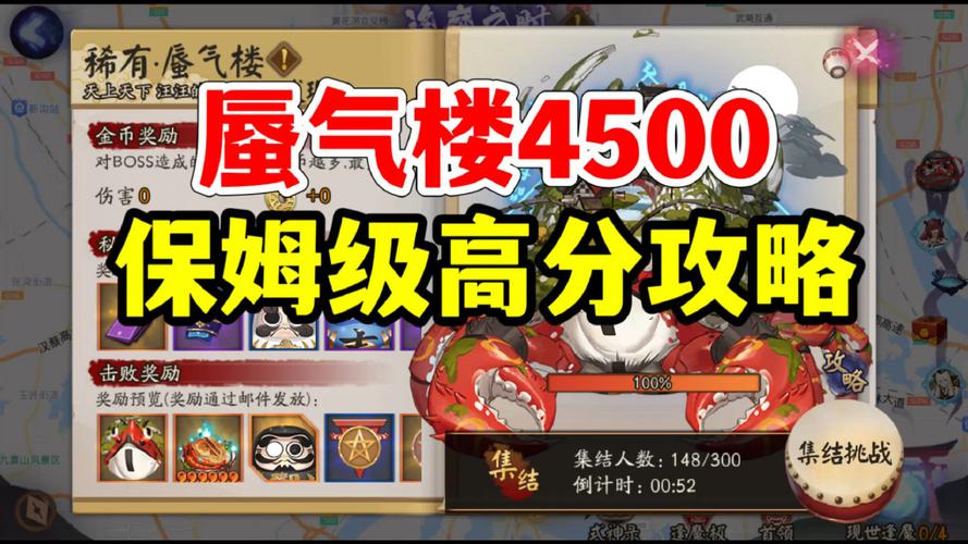 打法要点:发现蜃气楼后有3-6分钟的集结时间,可以在此期间备战。 开战之后无法继续集结加入战斗,难度与参战人数自动匹配。 蜃气楼会召唤海市蜃楼迷惑船队,并召唤手下围攻阴阳师。破了海市蜃楼后,蜃气楼将进入虚弱状态,此时承受伤害翻倍,且式神释放技能不消耗鬼火。