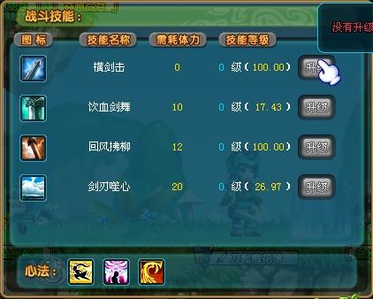 级的时候 基本为 幻剑离火→威慑天下(心法)→幻剑离火。