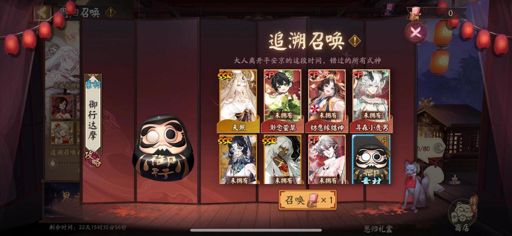 〖肆〗、《阴阳师》回归自选ssr条件是等级大于等于15级,离开游戏超过7天。玩家回归后每天完成指定任务达到指定积分,即可获取对应奖励。阴阳师们可以前往庭院左侧的灯笼架,点击召回好友。