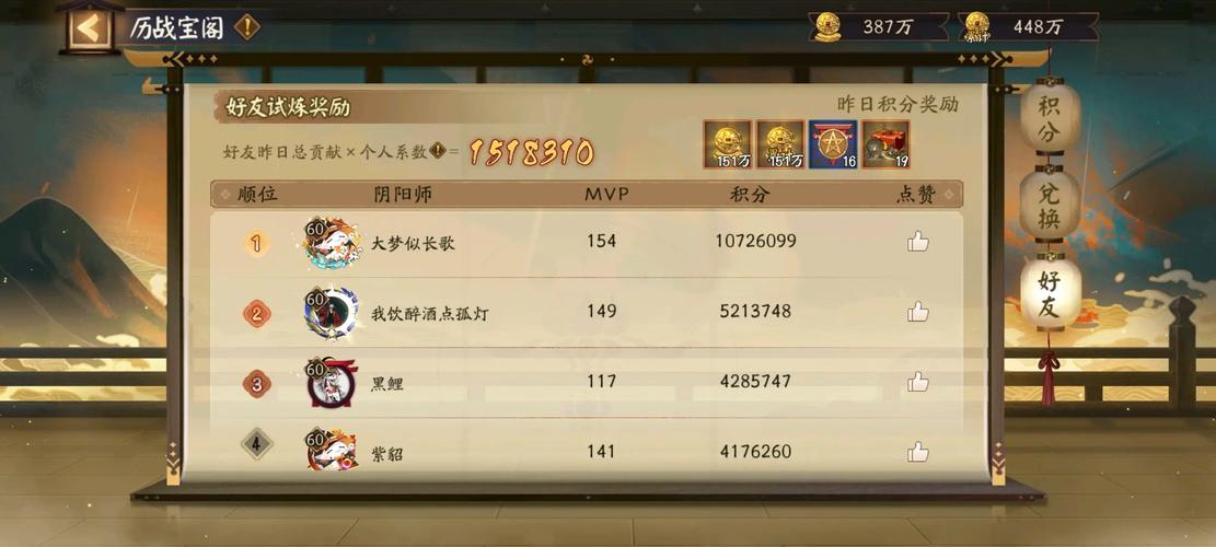 第五名:大天狗,这款式神自游戏推出以来便深受玩家喜爱。他不仅颜值出众,而且实力强劲,可以胜任多种战斗角色,无论是输出、辅助还是带狗粮,都能游刃有余。唯一的缺点是大天狗的动画效果略显缓慢,但这并未影响他的实用性。第四名:玉藻前,这款式神在魂十和斗技中都有着出色的表现。
