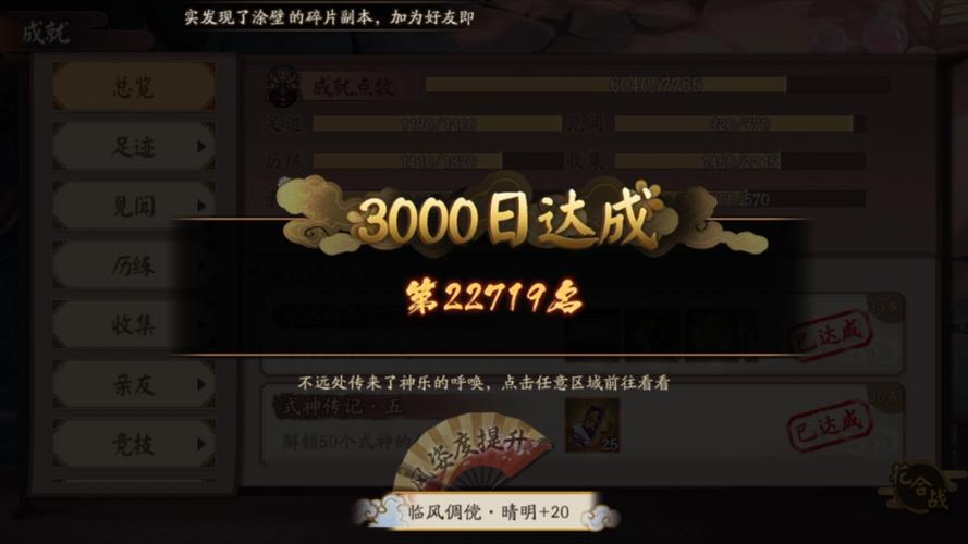 〖贰〗、阴阳师成就点主要通过完成成就任务获得。以下是具体步骤:进入游戏界面:首先,玩家需要进入阴阳师手游界面。进入试胆大会:在游戏界面下方菜单栏中,点击“试胆大会”选项。进入成就系统:在“试胆大会”界面右下角,点击“成就”按钮,进入成就系统界面。