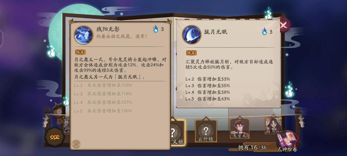 〖贰〗、阴阳师中的绘世花鸟卷技能有以下几个:寒梅裁雪:这是绘世花鸟卷的普通攻击技能。它使用彩墨凝成的花枝攻击敌方目标,造成攻击100%的伤害。随着技能等级的提升,伤害会逐渐增加,比较高可达125%,并且会为自身施加庇护1回合。墨气常萦:这是一个被动增益技能,它使友方全体获得“墨萦”效果。