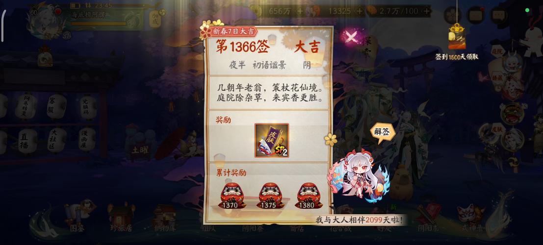 〖陆〗、在阴阳师中,老玩家可以通过帮助回归玩家完成回归挑战来获得樱灯饰,这些奖励可以在千物宝库中兑换各种丰厚的奖励。这样的设计不仅增强了玩家之间的互动,也使得回归玩家能够更加便捷地获取游戏内的资源。回归玩家在完成回归挑战后,还可以额外获得鸢灯饰。