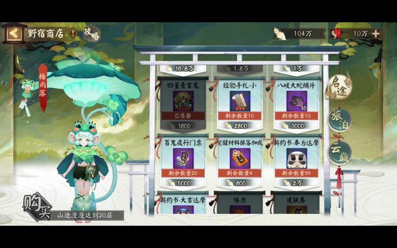 〖壹〗、不见岳活动商店兑换推荐:首先建议新手兑换四星青吉鬼x小经验卡x100紫蛇皮、20百鬼票、御魂+觉醒buffx99蓝蛋和白蛋。其次就是插画了,我们想换的话可以换。并且这次我们还能够兑换SR川猿新皮肤以及头像框。