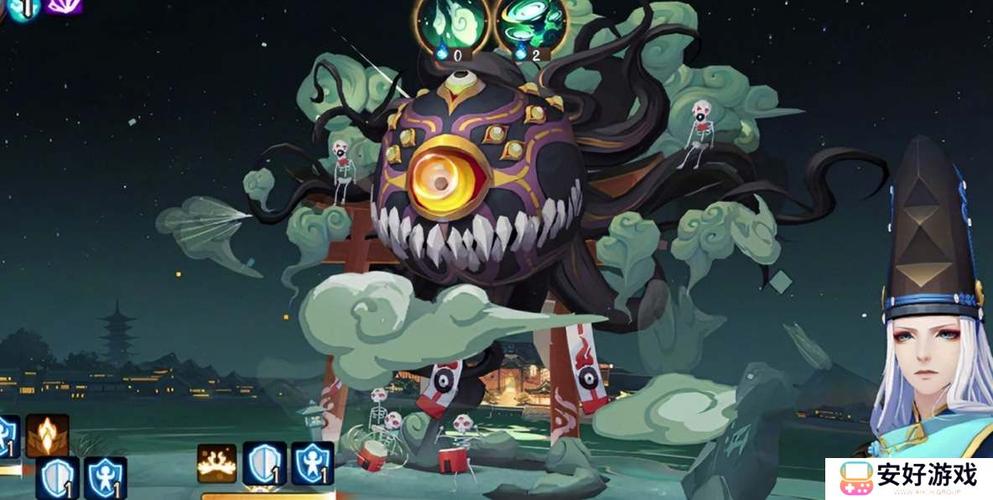 boss介绍黑晴明:本体2000w血的BOSS,挑战时间4分钟。小怪有速度较快的山童,如果不带拉条容易被上来锤哭。黑晴明继承了魂十一副本的特殊机制,开场暗星让敌我双方防御都为0,因此间接伤害式神在黑晴明战场中表现非常不错。