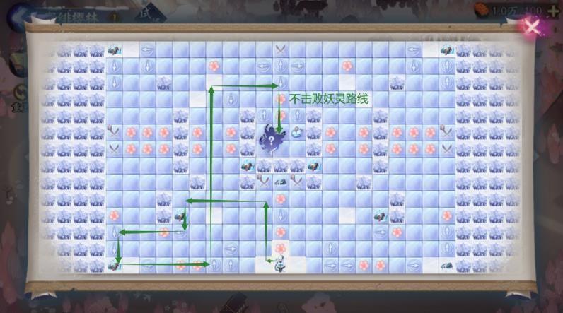 〖叁〗、松月樱林35步通关的路线图如下所示,从起点开始,按照箭头指示的方向前进,就可以顺利到达鬼王处完成关卡了;在挑战过程中遭遇小怪可以避免战斗,直接点击右上角退出;每个关卡都有多个成就目标,玩家也可以通过重置关卡的方法反复通关,完成不同的成就。