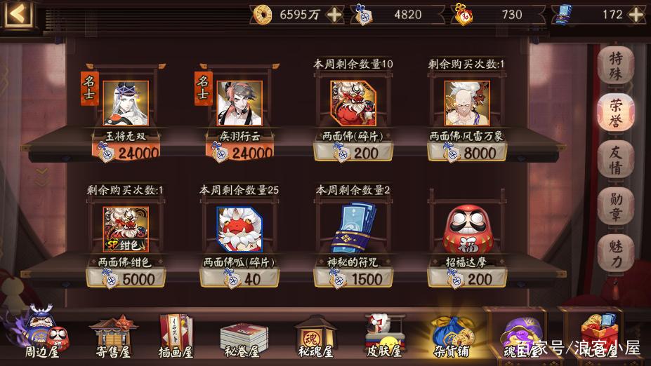 平民玩家杂货铺每周一,商店刷新,杂货店奖章和荣誉可以买到两个神秘的咒语。分享式神绘卷每周分享一次可以得到一个蓝色的符号。最幸福的是有活动更新,每个单独的活动分享都可以得到一个世界符号。结界突破结界突破每次连续刷30个左右,有可能出一个蓝符。