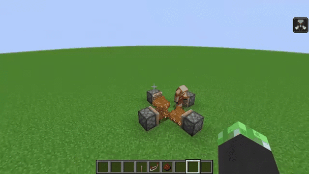 〖伍〗、蹦蹦机 改变不了鞘翅的“鸡肋”设定,那就从它本身的特点出发吧!利用粘性活塞与粘液块的弹跳作用,我们只需要在门口就能瞬间加速,配合烟花火箭的二次加速,直接升空。到了天上,各位冒险家们就可以展开鞘翅,自由自在的飞翔了。