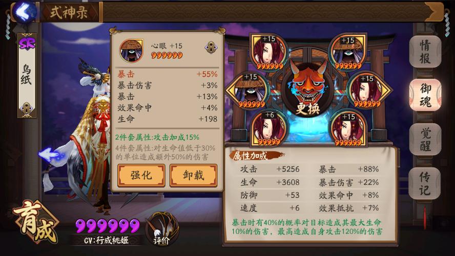 〖壹〗、阴阳师SP姑获鸟最强御魂搭配攻略:御魂推荐 歌伎:优势:作为PVE首领御魂,歌伎与SP姑获鸟的多段类输出非常搭配,可以触发额外伤害。适用场景:主要用于PVE战斗,特别是首领挑战。破势:优势:主流狗粮打手的核心御魂,适合高速、高面板的SP姑获鸟,用于高效刷狗粮。面板要求:攻击保证在8000左右,爆伤要在250以上。