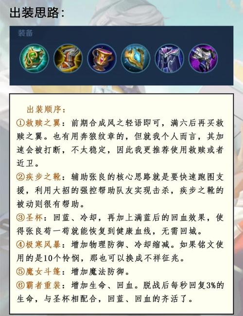 后期:抓单、蹲草,利用三技能控制对手,创造团战优势。小结张良拥有稳定的点控能力,配合打野gank效率高,在线上能够对敌人造成较高威胁,是高端局中的非BAN必选英雄。通过合理的出装、铭文搭配与操作技巧,可以充分发挥张良的优势,助力玩家早日上王者。