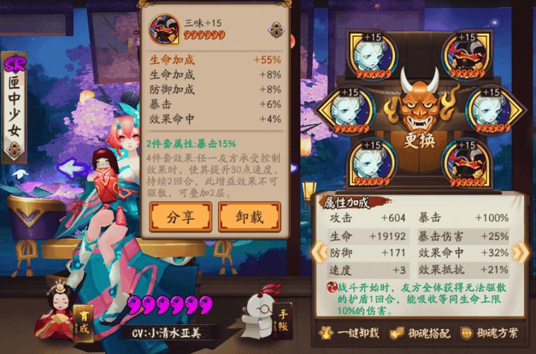 推荐理由:涂佛御魂可以为友方式神提供伤害buff加成,这在爬塔活动副本中非常有用。千姬作为辅助类式神,可以通过佩戴涂佛来增强队伍的整体输出能力。输出型御魂(破势、针女、心眼套)推荐理由:虽然千姬主要是作为辅助式神使用,但在某些情况下,也可以考虑佩戴输出型御魂来增加其输出能力。