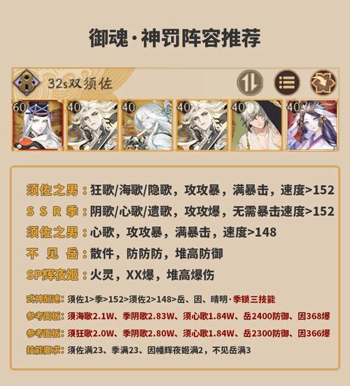须佐之男 - 使用海荒御魂,强化攻击力和暴击。阿修罗 - 心歌御魂搭配,同样注重攻击和暴击的提升。其他角色:火灵御魂堆叠爆伤,但要避免暴击;岳角色则选取散件堆叠防御,提供队伍生存保障。需要注意的是,神罚御魂挑战的难度不同,单人挑战每次消耗30体力,组队模式则为21体力。