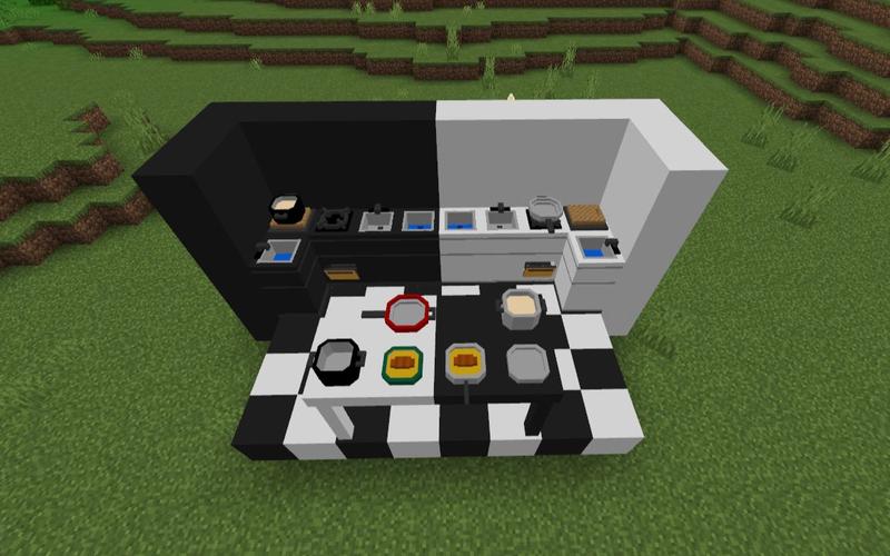 首先建造地基,中间铺上一层石英地板。 第二步是做两面墙,中间安装上玻璃,可以让房间透光。 再做一堵墙,并添加一扇门和一个窗户。 在窗户的位置搭建工作台和熔炉,用来做饭。 最后,建造一个餐桌,餐桌上铺上白色羊毛,这样,一个厨房就建造完成了。