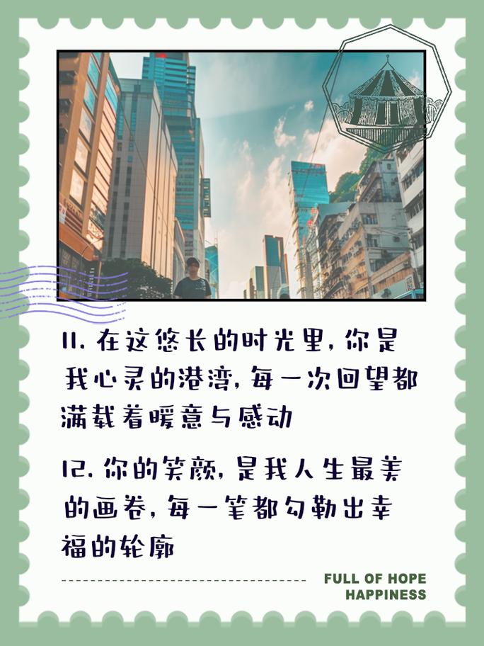 〖壹〗、你的微笑,对我来说是世界上最温暖的力量。 在我眼中,你是那个能照亮我世界的独特存在。 无论世界如何改变,我的爱永远属于你。 我想陪你走过每一个春夏秋冬,一起书写我们的幸福故事。 爱一个人,就是即使在世界的尽头,也愿意与他携手同行。 你是我生命中最美好的礼物,你的存在让我的世界变得完整。
