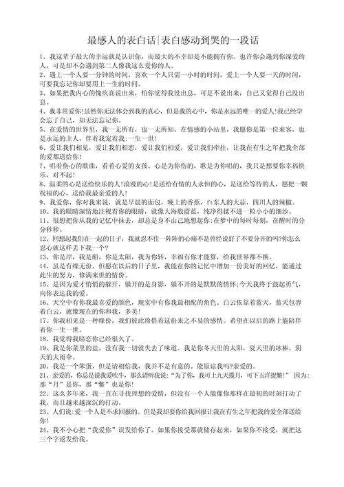以下是一段感人的表白话语,可以作为借鉴:我爱你,不仅仅因为你的长相,更因为你那独特的内在魅力。我愿意成为你生命中的一部分,无论是否能够给予你幸福,我都希望幸福能时刻伴随你左右。你的幸福,便是我最大的心愿,无论最终是否能与你携手共度,我都会衷心祝福你。