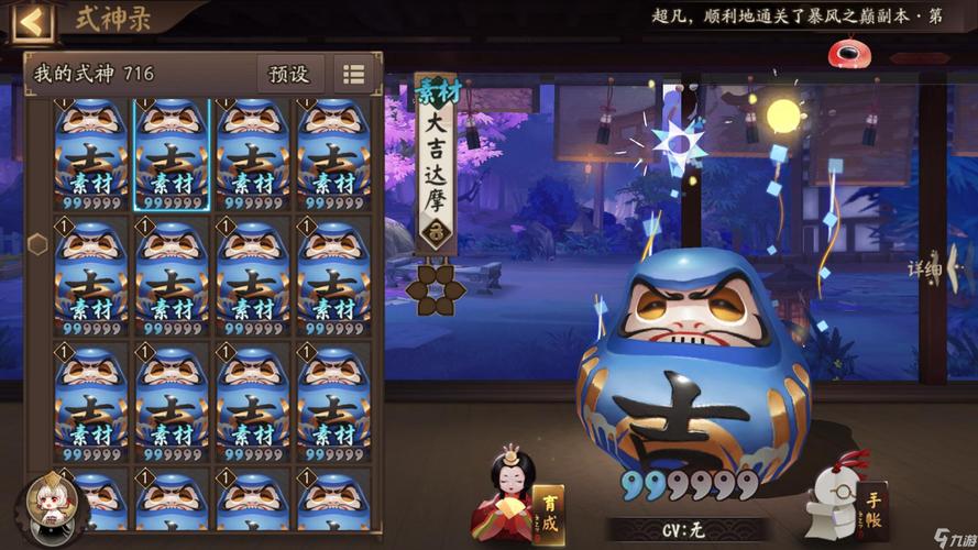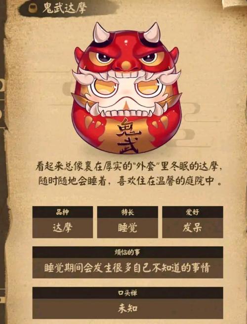 阴阳师拥有四种不同的达摩,红色达摩可以作为升级素材使用,喂给式神提供经验。白色达摩可作为升星材料,因为升级的经验只需要其他式神的一半。大吉达摩是红色达摩的升级版,推荐养到13使用。御行达摩可以提升式神一个技能等级,推荐喂给SSR式神。
