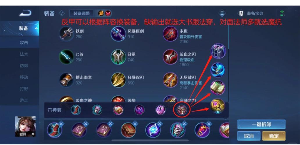 〖壹〗、破军:增加攻击力,显著提高貂蝉的输出能力。无尽战刃:增加攻击力和暴击率,提升貂蝉的爆发伤害。名刀·司命:提供生存能力,增加貂蝉的逃生几率。破晓:增加攻击力和穿透效果,确保貂蝉对坦克和战士类英雄的输出能力。辉月:提供主动技能“月之守护”,关键时刻免疫所有伤害,增加貂蝉的生存能力。