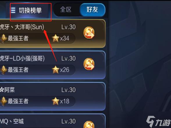 〖贰〗、在王者荣耀中查看英雄荣耀战力排名的步骤如下:进入游戏 首先,打开手机上的王者荣耀应用,点击并进入游戏主界面。打开排名榜 在游戏主界面,找到并点击图示位置的好友等级排名(或类似的排名榜入口),这将打开排名榜界面。