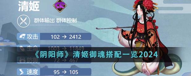 〖壹〗、《阴阳师》新版本清姬御魂搭配推荐如下:核心搭配思路 网切+2生命:新版本清姬的核心御魂搭配。网切能够提供额外的无视防御效果,非常适合清姬这种依赖dot(持续伤害)和减防技能的式神。2号位选取生命加成,可以增强清姬的生存能力,让她在战斗中更加持久。