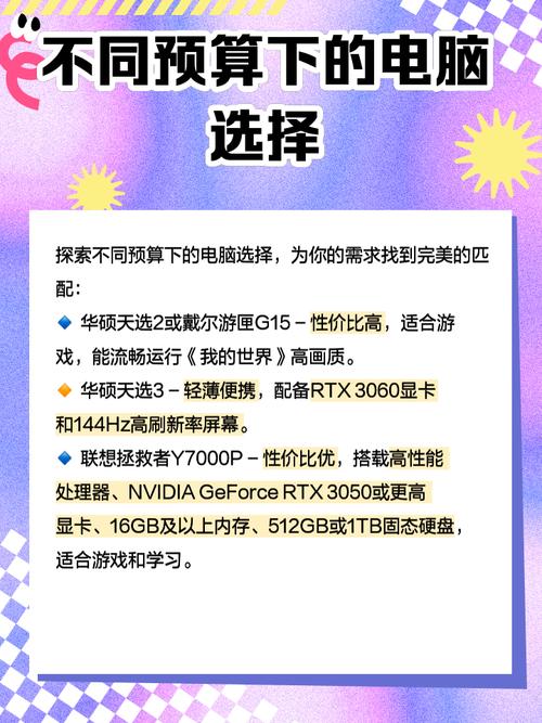 在5000预算范围内,要开动我的世界高配光影,建议配置如下:CPU选用AMD Ryzen 5 3600或Intel Core i5-10400,内存选16GB,存储至少500GB SSD,显卡推荐RTX 3060或RX 6600 XT,显示器则需要2K分辨率,刷新率至少144Hz,刷新率越高体验越好。