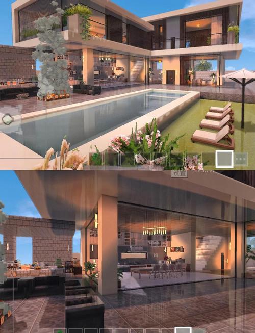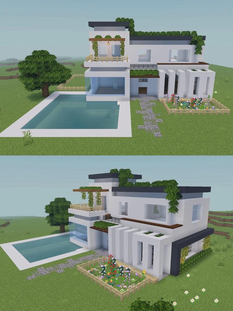 〖贰〗、建造步骤:首先确定别墅的整体布局,使用白色混凝土作为主要建筑材料,搭建别墅的主体结构。然后,利用平滑石英楼梯和海晶灯等装饰元素,提升别墅的奢华感。具体细节如窗户的设计、屋顶的造型等,可以借鉴相关的建筑教程进行完善。现代极简风格别墅:地基:从8×8地基开始,使用云杉木方块搭建。