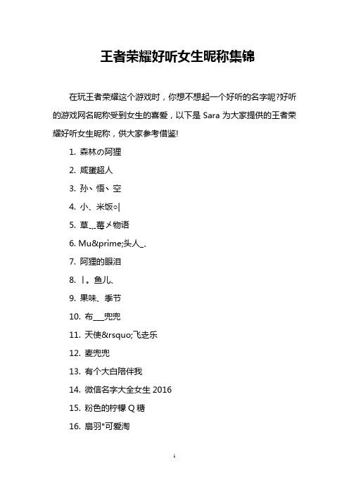 王者荣耀比较皮的名字一览骚气ID借鉴