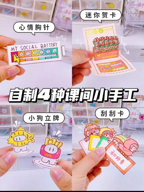 〖壹〗、自制洗手片 将洗手液倒在纸片上,晾干后对折即可制成简易的洗手片。这种手工既实用又环保,适合家庭或学校使用。 解压小手工 通过折纸、编织等方式制作简单又好玩的解压小手工。这些手工可以让人在紧张或疲劳时放松心情,缓解压力。 纸杯变形记 使用两个纸杯、彩色卡纸、毛线等材料,可以制作出会爬行的节节虫等有趣的玩具。