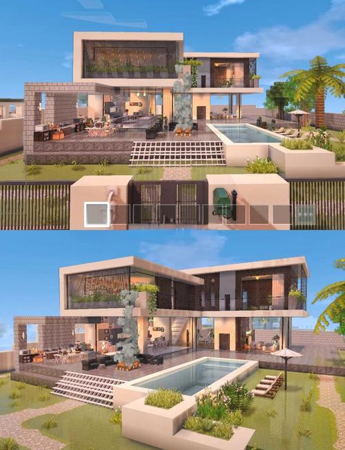 可以选取平滑石英梯、大型蕨类、杉木材等自然材料,以及青色陶土、遮光玻璃等装饰性材料来建造一个小型别墅。也可以采用原石和木头快速搭建一个湖边小别墅,注重实用性和简约风格。若追求现代风格,可选用石英块、橡木木板、玻璃等材料,打造简约时尚的别墅外观。