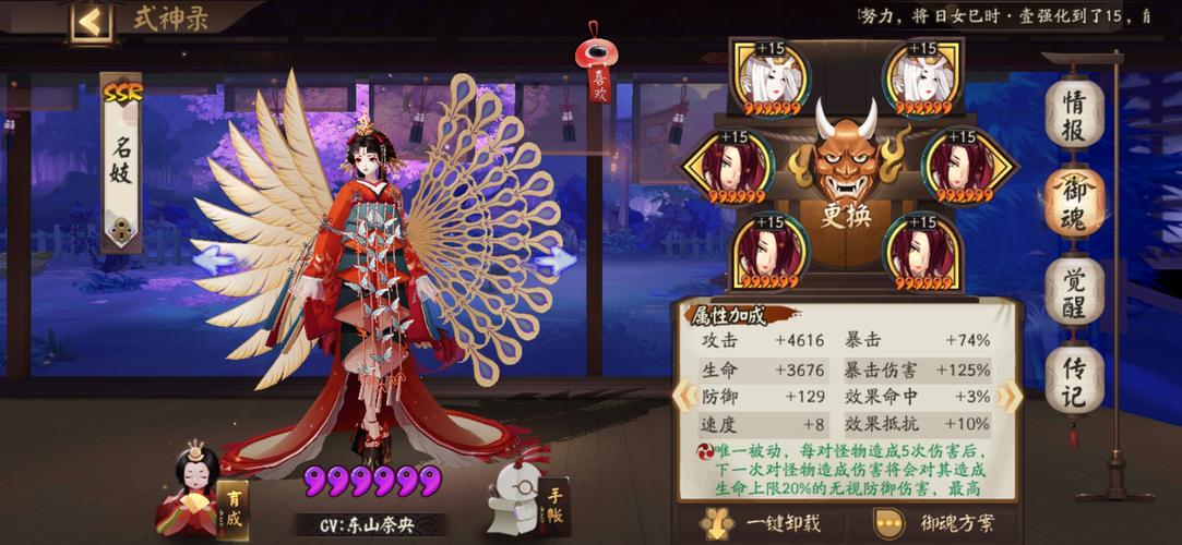 核心输出搭配 首选御魂:“破势”四件套。由于不知火的核心技能“花舞”具有高伤害倍率,且“破势”能在目标生命值低于30%时提供额外伤害加成,因此非常适合用于快速击杀残血敌人。辅助御魂:两件套选取“攻击加成”,进一步强化不知火的输出能力。