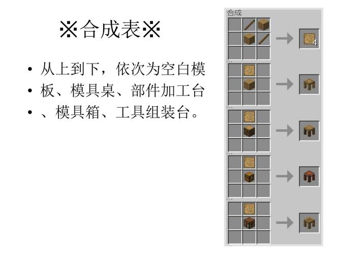 进入世界后自带一本 匠魂书,拿在手中鼠标 右击可查看使用方法。 ps:鼠标教的是制作空白模板和工具台的过程,匠魂里的工作台是非常多的,虽然它们的外观看上去很相似,但功能差别很大。我的世界匠魂怎么做工具,以平底锅举例: 在背包或者普通工作台将木棍和木板如下图所示放置,得到 空白模板。