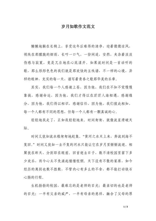 〖叁〗、岁月中考作文1 风无声,吹绿了大地;爱无言,滋润了心田。 ——题记 曾经以为,父亲是个感情迟钝的人。 小的时候放风筝,陪我的是母亲,捡风筝的是父亲。 小的时候学骑自行车,摔倒扶我起来的是母亲,站在一旁喊着让我爬起来继续学习的是父亲。 小的时候我不听话,打我的是母亲,给我上药的是父亲。