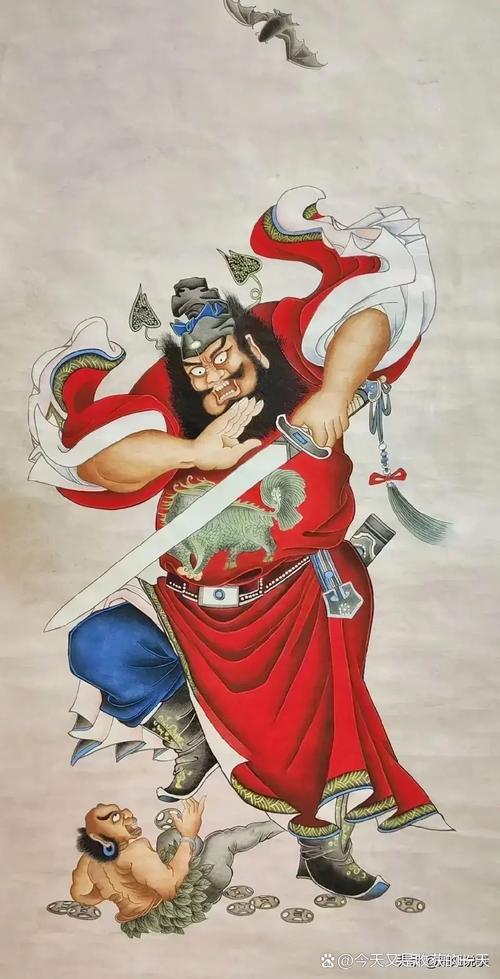 除了钩子,钟馗还常持有钢鞭、金锏、七星剑等武器。这些武器各具特色,钢鞭和金锏威力巨大,可以用来击打和镇压恶鬼;而七星剑则是一把充满灵性的宝剑,能够斩妖除魔,保护百姓免受鬼怪侵扰。这些武器与钩子一同构成了钟馗捉鬼时的强大装备,让他在捉鬼的道路上无往不胜。