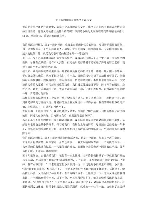 我想当一名舞蹈老师范文1每个人都有自己的梦想,当然我也不例外。我的梦想就是当一名舞蹈老师。我的姐姐是学音乐的,而我又特别喜欢舞蹈,因此我有了一个“大胆”的想法:长大后和姐姐办一所艺术学校,专门教孩子唱歌和跳舞。