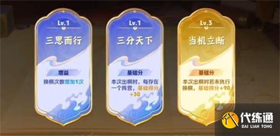 〖贰〗、利用特定英雄加成:如司马懿和甄姬在某些关卡中会有额外的基础得分加成。灵活变阵:根据局势调整羁绊和锦囊牌的选取,以达到最优的得分效率。通过遵循以上策略和建议,玩家可以在三分英雄棋模式中取得更高的分数。