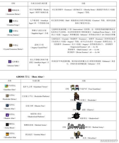 〖壹〗、首先查看配方(黑曜石和烈焰粉)。将黑曜石和烈焰粉准备好。按照配方顺序依次放入。放入完成后,开始进行召唤祭坛。召唤祭坛完成。