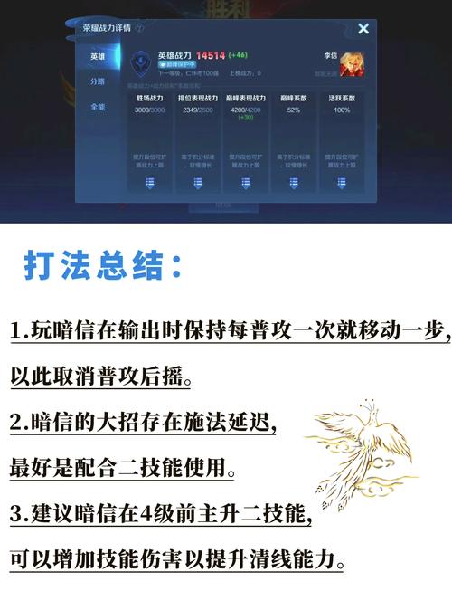 要提升王者荣耀中李信的操作意识并快速掌握他的技能,可以从以下方面入手:了解李信的技能特点 被动技能:李信的普通攻击和技能命中敌人时会积累剑气,剑气满时普通攻击将变为剑气攻击,造成额外伤害。一技能:向前冲刺并对路径上的敌人造成伤害,留下剑气。