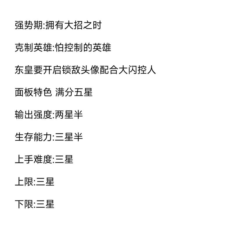 〖壹〗、学识宝石 前期东皇游走时,这件装备可以弥补他的经验和经济,同时增加移速,配合一技能的加血效果,提升生存能力。抵抗之靴 减少控制时间,增加粘人能力,避免被放风筝,提升前期野区搞事的能力。红莲斗篷 配合东皇的吸血技能,提供续航和持续伤害,团战中收益显著。