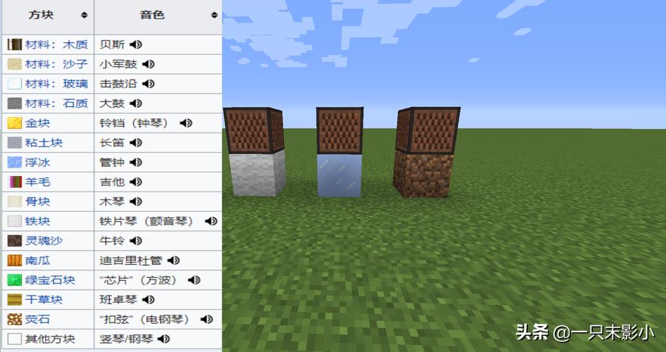 选取音符盒下边的垫砖 垫砖种类:音符盒下边的垫砖可以选取木头、石头、玻璃、土等材质,每种材质都有独特的音效。音效差异:不同材质的垫砖会使音符盒发出的声音有所不同,因此,在创作音乐时,可以根据需要选取合适的垫砖来营造不同的音乐氛围。