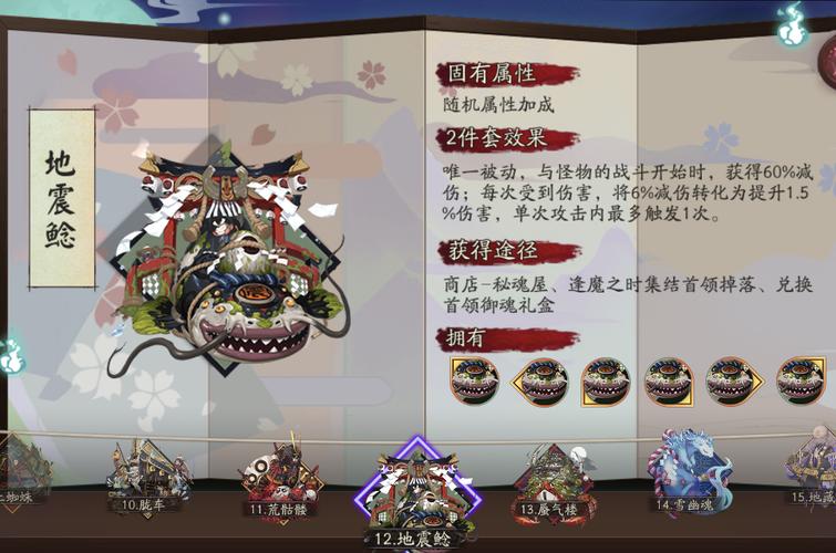 获得方式 首领御魂:主要通过击败逢魔之时四大集结首领来获取对应的首领御魂。此外,也可以在秘魂屋通过金币购买(6星为48W金币),并且有几率刷新出。后续版本还可能开放更多获取途径。普通御魂:获得方式多样,包括但不限于御魂副本、探索副本、各种活动奖励等。