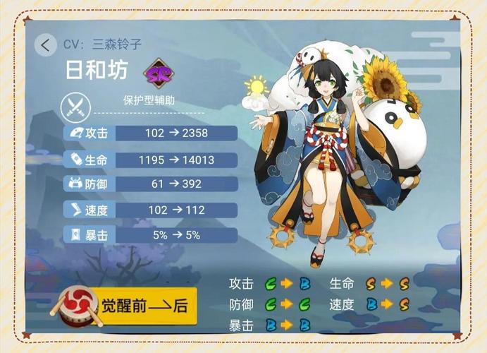 〖壹〗、阵容搭配:日和坊适合与输出式神和控制式神搭配,形成攻防兼备的阵容。在斗技中,可以搭配招财猫或火灵等提供鬼火的式神,确保队伍技能释放顺畅。综上所述,日和坊作为一位强大的治疗与复活式神,在御魂搭配和培养上应注重生命值的提升,并根据不同场景选取合适的御魂组合。