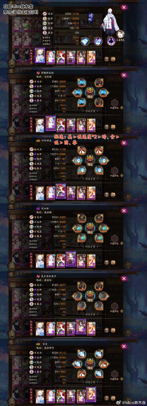 〖叁〗、炼狱胧车 『1』阵容搭配:晴明:星灭。sp大岳丸:比较好都是狂土满爆。sp清姬:攻攻爆满爆雪幽魂,注意速度一定要大于sp大岳丸才行。不见岳:涂佛高防御的。sp因辉月砸;比较高爆伤招财。缘结神:速xx,招财唇气楼。