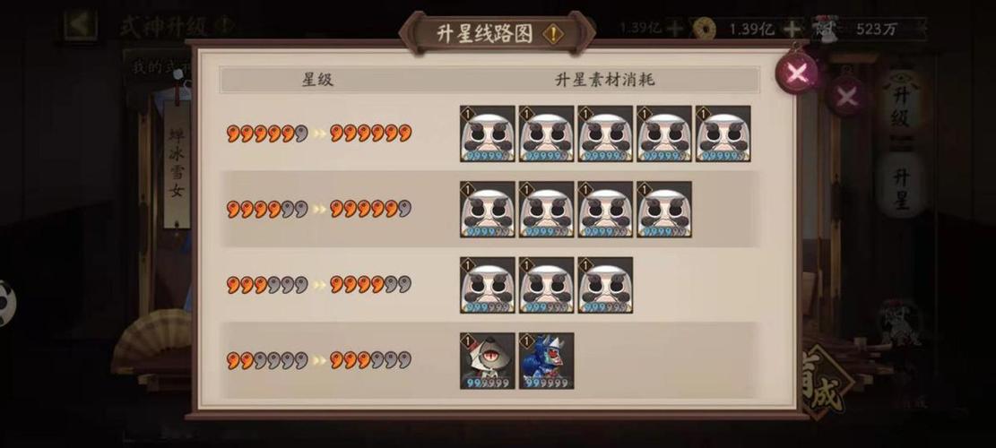商店杂货铺每周可购买大型经验手札*1,可提供1140000经验,售价150勾玉,比较推荐蓝蛋紧缺/不爱探索/新手购买。暴食鬼功能功能开放条件:阴阳师等级达到40级。大人们可消耗大吉达摩、招福达摩、N阶式神以及对应的金币,向「暴食鬼」内存储式神经验,以供键育成系统使用。