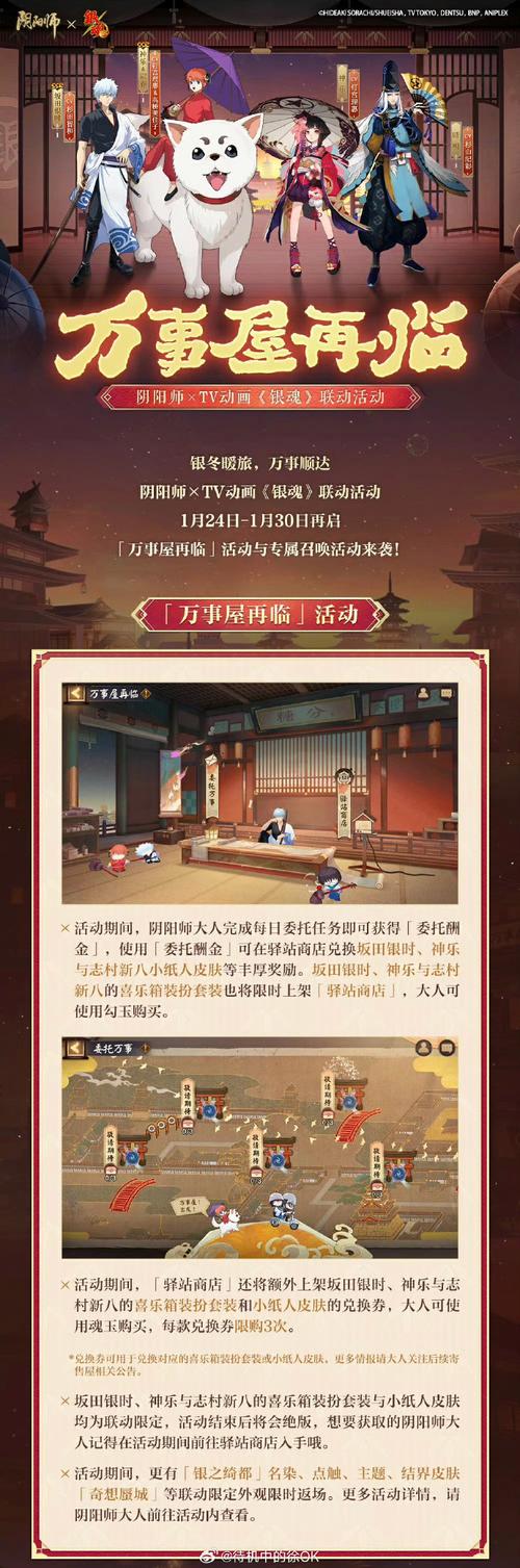 〖陆〗、在2023年的4月26日,阴阳师与银魂的联名活动将正式启动。玩家在这一天之后,可以通过参与抽卡并积攒印记的方式,有机会获取到联动限定的式神。此外,活动中还会设置多项奖励,以满足不同玩家的需求。本次联动不仅限于获得新的式神,还将推出一系列丰富多样的活动。