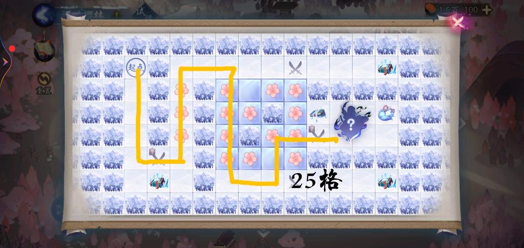 首先进入樱林,我们一共可以选取4条不同的路线,从上到下这四条路线分别是:御魂、蓝蛋白蛋红蛋、金币和觉醒材料,可以看到的是在御魂路线中前面两个就是宝箱,所以推荐大家走御魂路线。 在御魂路线中拿到两个宝箱之后,到第三个需要我们打怪的地方点击右上角的退出,然后重置关卡。
